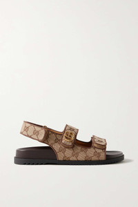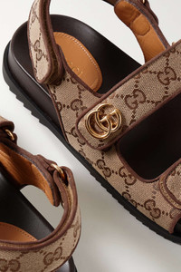 EDITORS'NOTES Gucci's signature monogrammed canvas has been used to create everything from clothing and bags to these 'Moritz' sandals. Jacquard-woven with the brand's 'GG' motif, they have thick VELCRO® straps and are set on chunky leather soles. Match your jewelry to the gold-tone logo embellishments. SIZE & FIT - Fits true to size, take your normal size - Italian sizing DETAILS & CARE - Sole measures approximately 20mm/ 1 inch - Brown and dark-brown canvas-jacquard - VELCRO®-fastening straps