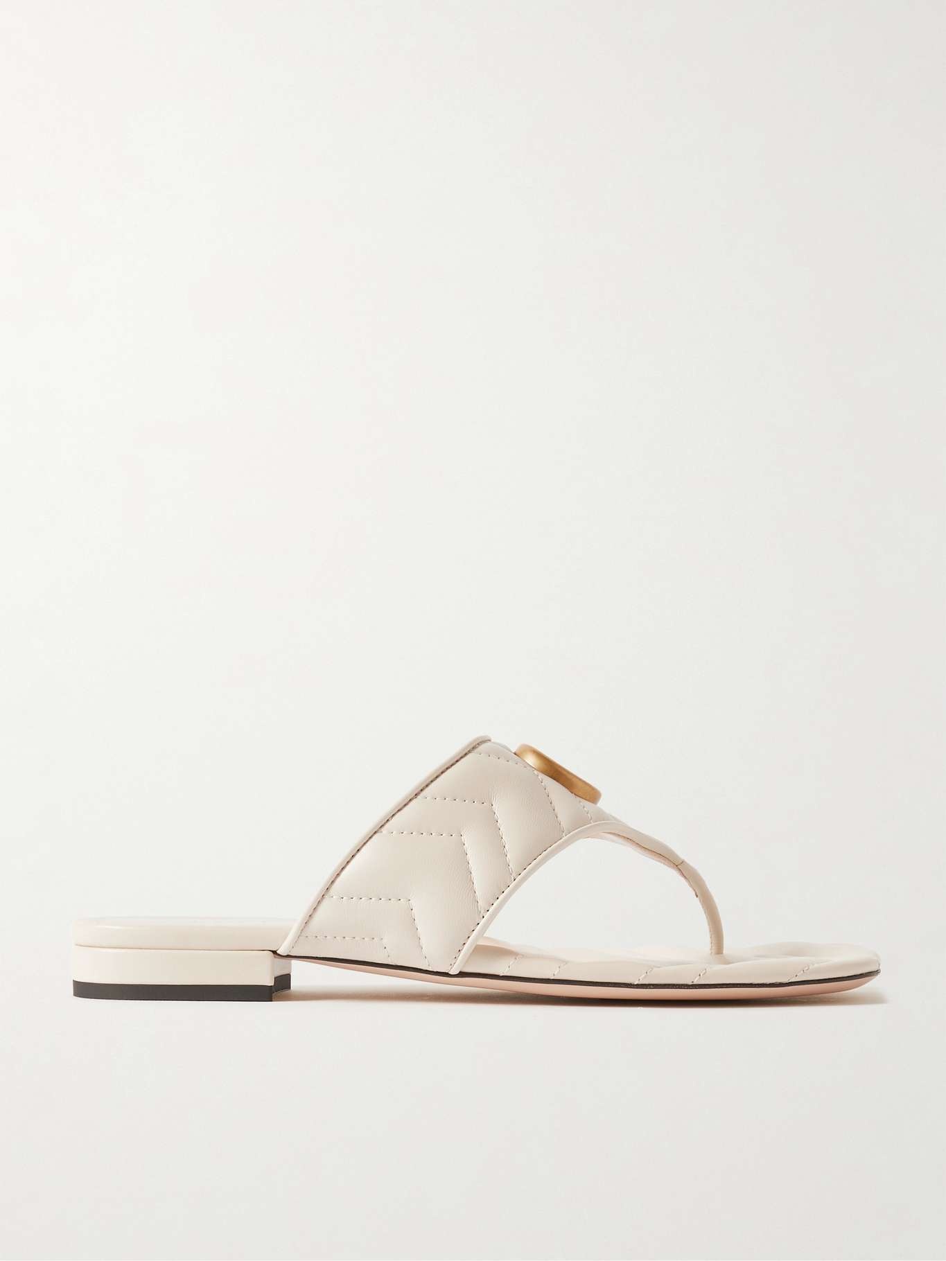 EDITORS'NOTES Gucci's sandals are instantly recognizable thanks to the 'GG' hardware on the straps. They're crafted from the same chevron-quilted leather as the house's signature 'Marmont' bags and rest on slight heels. SIZE & FIT - Fits true to size, take your normal size - Italian sizing DETAILS & CARE - Slight heel - White leather - Slip on