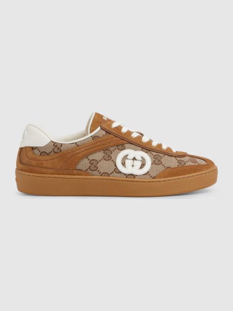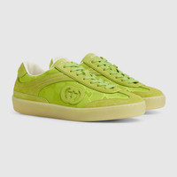 This pair of shoes is crafted from supple suede and GG nylon, exuding a sophisticated yet modern appeal. The streamlined silhouette is elegantly enhanced by the signature Interlocking G logo, adding a refined touch to the design. - Acid green suede - GG nylon insert - Leather lining - Interlocking G logo - Additional pair of laces included - Lace-up closure - Flat - Heigth: 0.1" - Made in Italy