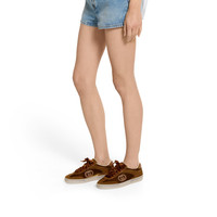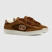 This pair of shoes is crafted from smooth velvet and GG nylon, exuding a sophisticated yet modern appeal. The streamlined silhouette is elegantly enhanced by the signature Interlocking G logo, adding a refined touch to the design. - Brown velvet - GG nylon insert - Interlocking G logo - Additional pair of laces included - Lace-up closure - Flat - Heigth: 0.1" - Made in Italy