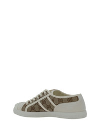 Cotton Sneakers by Gucci, round toe, front lace-up closure, coated cotton design with all-over repeated jacquard GG Supreme print, iconic brand signature embroidered in contrasting color on outer side panel, contrasting rubber sole. DETAILS sku 759071FAC19_9756 composition : COTTON 100% RUBBER 100% color group : BEIGE gender : WOMAN season : SS24 size chart : SHOES IT category name : SNEAKERS icon : icon