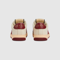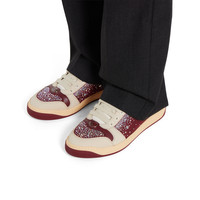 In the Fall Winter 2025 collection, this shoe features multi-dimensional crystals as a special feature on the classic silhouette. The emblematic monogram canvas adds a touch of timeless elegance, highlighting the brand's heritage. Carefully crafted, this design effortlessly combines luxury and bold style, making it a true statement piece. - Ivory leather - Gucci Rosso Ancora red GG canvas insert - Leather lining - Multi dimension crystals detail - Oval enameled detail with metal Double G - Label with Gucci vintage logo - Additional pair of laces included - Lace-up closure - Height: 0.3" - Made in Italy