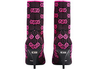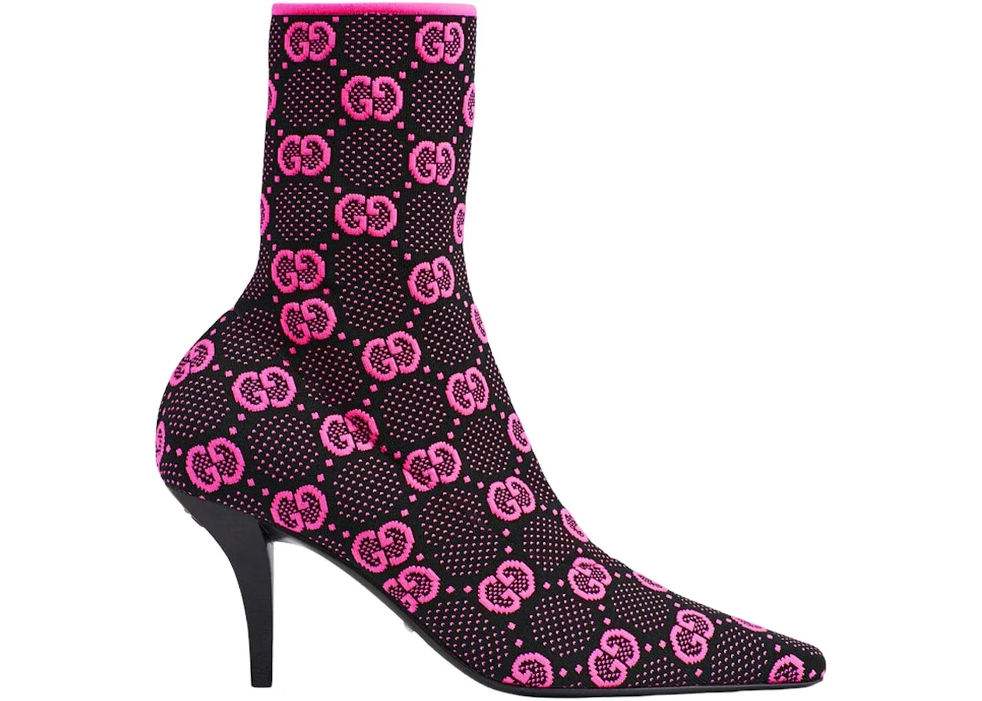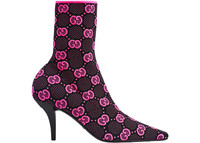 The GG logo is an established symbol of Gucci's heritage, evolving from the original rhombi design first used in the '30s. Here the unmissable motif decorates this pair of technical knit fabric ankle boots. - Black and fluorescent fuchsia GG technical knit fabric - Women's - Square toe - Square G metal detail - Leather sole - Mid-heel - 3" heel height; 6.7" shaft, 9" circumference - all measurements based on a size 37 (IT) - Made in Italy