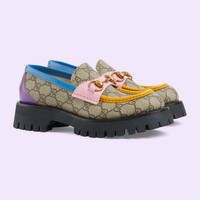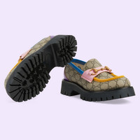 The bee is an archival code first introduced in Gucci ready-to-wear in the 1970s. - Beige and ebony GG Supreme canvas - Multicolor leather trim - Women's - Printed bee on the back - Horsebit detail - Rubber lug sole - Low heel - Made in Italy