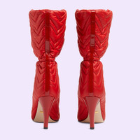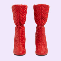 Matelassé leather continues to come to the fore of the Creative Director's designs in new and unique ways each season. The emblematic monogram is embroidered on top of this pair of stiletto boots, furthermore defined by a drawstring detail for a contemporary touch. - Red matelassé GG chevron nylon - Women's - Drawstring detail - High heel - Made in Italy