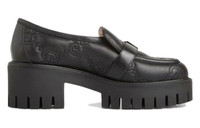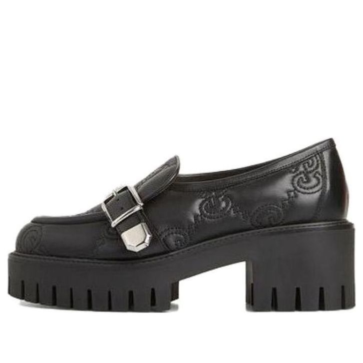 Introduced in Love Parade, the GG quilted leather is now presented on a selection of shoes defined by a strong logo feel. The name of the House also appears on the buckle of this pair of shoes. - Black GG quilted leather - Women's - Smooth black leather trim - Buckle detail with Gucci engraving - Lug rubber sole - Low heel - Made in Italy
