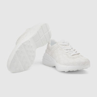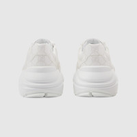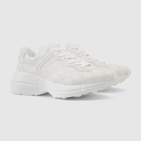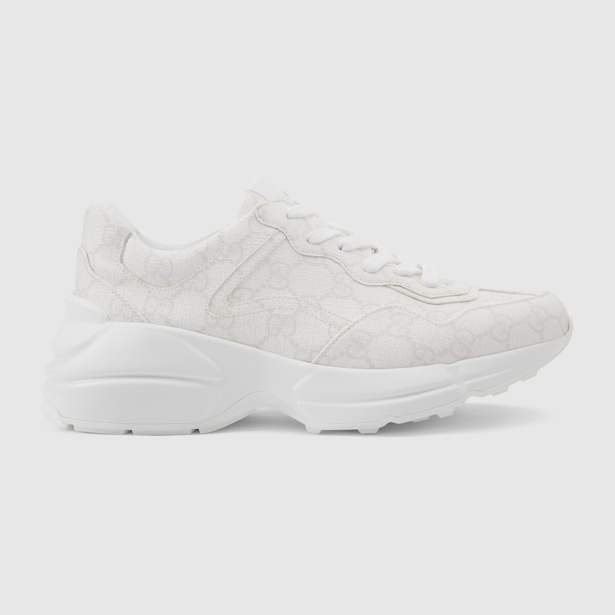A reference to retro sportswear, the Rhyton sneaker stands out for its chunky silhouette and oversize sole. A new iteration, imagined for the Gucci Love Parade collection, the shoe is crafted from white GG Supreme canvas. The emblematic material gives the style a strong logo feel, playing with the vintage influences to create a link to the '90s logo trend. - White GG Supreme canvas - Women's - Rubber sole - Additional pair of laces included - Lace-up closure - Mid heel - 2.8" height