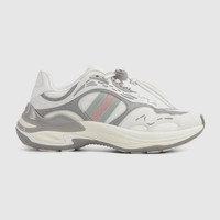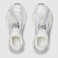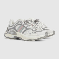 The Gucci 2.0 sneaker refreshes one of the House’s most recognizable emblems, the Web stripe. Featuring the new iteration of this signature detail, these sneakers are defined by a thick EVA sole with a dynamic silhouette that ensures a steady and comfortable stride. - White and grey mesh and leather - Women's - Leather lining - Reflective material with GG trim - Padded Web - EVA rubber sole with GG - Lace-up closure with Interlocking G coulisse - Flat - Height: 0.4" - Made in Italy