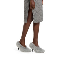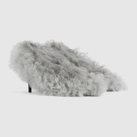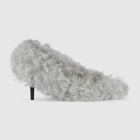 In the Fall Winter 2025 collection, a bold expression of femininity, this women's heeled mule is presented in curly merino wool with a sharp pointed toe. The sleek silhouette channels a sense of contemporary sophistication, blending retro undertones with modern elegance. - Light grey merino wool - Leather sole - Mid-heel - Height: 3.3" - Made in Italy