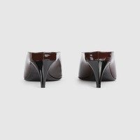 In the Fall Winter 2025 collection, a bold expression of femininity, this women's heeled mule is presented in glossy patent leather with a sharp pointed toe. The sleek silhouette channels a sense of contemporary sophistication, blending retro undertones with modern elegance. - Dark brown patent leather - Leather sole - Mid-heel - Height: 2.1" - Made in Italy