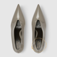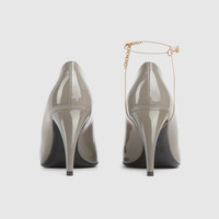 In the Fall Winter 2025 collection, a bold expression of femininity, this women's heeled pump is presented in glossy patent leather with a sharp pointed toe. The sleek silhouette channels a sense of contemporary sophistication, blending retro undertones with modern elegance. - Grey patent leather - Leather sole - Mid-heel - Height: 3.3" - Made in Italy
