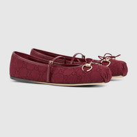 This iconic Horsebit ballet flat pays homage to the original ballet shoe silhouette defined by a squared tucked toe cap and the delicate bow detail. This style is crafted in Original GG canvas and defined by a light gold-toned Horsebit. The "sacchetto" construction ensures a high level of comfort, thanks also to the soft padded insole. - Gucci Rosso Ancora red Oginal GG canvas - Women's - Light gold-toned hardware - Leather lining - Horsebit - Leather bow detail - Leather sole - "Sacchetto" construction - Soft padded insole - Leather strap closure with adjustable buckle - Flat