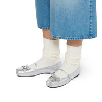 This signature Horsebit ballet flat pays homage to the original ballerina silhouette, defined by a squared tucked toe cap and delicate bow detail. This style is crafted in metallic leather, complete with a light gold-toned Horsebit. The "sacchetto" construction ensures a high level of comfort, thanks also to the soft padded insole. - Metallic silver leather - Silver-toned hardware - Leather lining - Horsebit - Leather bow detail - Leather sole - "Sacchetto" construction - Soft padded insole - Leather strap closure with adjustable buckle - Flat - Made in Italy