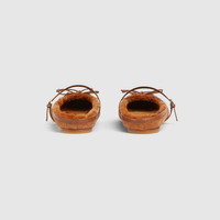 In the Fall Winter 2025 collection, this Horsebit ballet flat mule pays homage to the original ballet shoe silhouette defined by a squared tucked toe cap and the delicate bow detail. This style is crafted in GG suede and defined by a light gold-toned hardware. The "sacchetto" construction ensures a high level of comfort. - Brown GG suede - Light gold-toned hardware - Merino wool lining - Horsebit - Leather bow detail - Leather sole - "Sacchetto" construction - Soft padded insole - Strap closure with adjustable buckle - Flat - Made in Italy