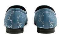 The Gucci Jordaan is presented in blue and silver light GG lamé for Pre-Fall 2020—a reiteration of an archival fabric. Defined by the Horsebit detail, a historical Gucci code, the key silhouette pays homage to the equestrian world and evolves from the classic penny loafer. - Blue and silver light GG lamé - Women's - Blue leather piping - This product contains leather made through an alternative chrome free tanning process, reducing the environmental footprint compared to traditional methods. - Leather sole - Horsebit detail - Slim shape - .5" heel - Made in Italy