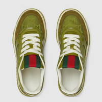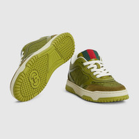 In the Spring Summer 2025 collection, the Re-Web sees Gucci’s heritage stripes as a bold statement detail on a contemporary silhouette. This pair is crafted from the GG canvas and leather. Defined by multiple details, this new sneaker takes center stage with the bold green and red Web tongue. - Dark green GG canvas - Women's - Dark green leather trim - Leather lining - Rubber outsole with Interlocking G and Gucci script logo - Gucci script and Interlocking G Web tag - Interlocking G details on the eyelets - Stitching detailing recalling the Web - Tongue with Web - Additional pair of laces included - Lace-up closure - Low heel - 1.2" heel height - Made in Italy - This style runs big, we recommend sizing down