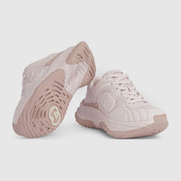 The Gucci Ripple sneaker features innovative stitching techniques which emulate the fluidity of water. The leather design is complete with three-dimensional elements which flow from the upper to the outsole, such as an Interlocking G leather patch with a 3D effect and a Gucci lettering metal hardware. - Pale pink leather - Women's - Pale pink mesh details - Gucci lettering metal hardware - Interlocking G patch - Lightweight rubber sole - Top stitching - Additional pair of laces included - Lace up - Low heel - Made in Italy