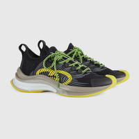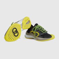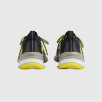 Designs inspired by the sporting world are interpreted through the Gucci lens with standout logo details. This pair of streamlined sneakers is crafted from black technical knit fabric and defined by the Interlocking G. A bi-color sole completes the style with a playful note of chromatic contrast. - Black technical knit fabric - Women's - Interlocking G rubber detail - Bi-color rubber sole - Loop detail at the back - Gucci at back outersole - Lace-up closure - Made in Italy