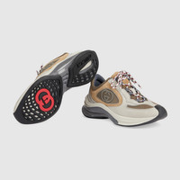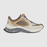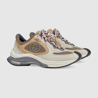 Designs inspired by the sporting world are interpreted through the Gucci lens with standout logo details. This pair of streamlined sneakers is crafted from grey suede and enriched with a bi-color rubber sole and an Interlocking G detail. - Grey suede - Women's - Light brown suede trim - Interlocking G - Bi-color rubber sole - Lace-up closure - Low heel - 2.4" height - Made in Italy - To find your size, please refer to our sizing guide, instead of the measurement on the insole of the product.