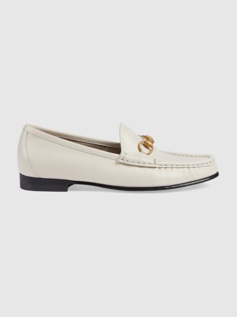 Our Horsebit 1953 loafer in leather. Since the introduction of its classic shape in the 1950s, the preppy-inspired shoe has continued its influence, redesigned in new forms and materials. - Black leather - Women's - Horsebit detail - 1953 collection: 60th anniversary tag - Flat - .6" heel height - Made in Italy