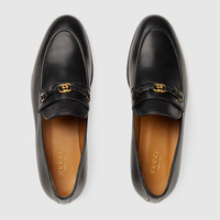 Since the introduction of its classic shape in 1950s, the preppy-inspired loafer has continued its influence, redesigned with different details, in new forms and materials. Here, it is presented in black leather and is defined by a unique Horsebit Interlocking G braided leather strap, paying homage to the House's heritage. - Black leather - Women's - Horsebit Interlocking G braided leather strap - Leather sole - Flat - 0.8" heel height - Made in Italy