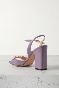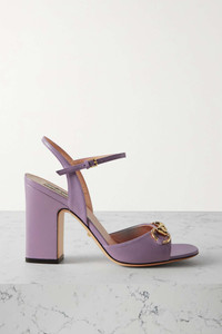 House details add a logo touch to this pair of sandals. Inspired by the origins of the brand, the emblematic Horsebit defines the shoe. Presented in lilac leather, this pair of sandals is completed by an ankle buckle closure. - Lilac leather - Women's - Gold-toned hardware - Horsebit detail - Leather sole - Ankle buckle closure - Mid-heel - Made in Italy