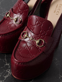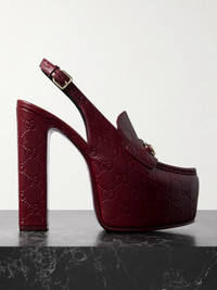 Sabato De Sarno celebrates Gucci's storied heritage with signature designs and archival details. Modelled after the label's iconic horsebit loafers, these platform pumps have been crafted in Italy from logo-debossed leather in a 'Rosso Ancora' shade inspired by the elevators in the Savoy Hotel where the brand founder first worked as a porter. Details & Care - Burgundy leather (Calf) - Buckle-fastening slingback strap - Designer color: Rosso Ancora