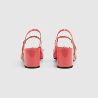 In the Spring Summer 2025 collection, the iconic Horsebit defines this pair of patent leather pumps. The rounded toe and the adjustable ankle closure complete the style, enhancing its preppy spirit. - Bright pink patent leather - Women's - Light gold-toned hardware - Horsebit - Leather sole - Mid-heel - Height: 2.1" - Made in Italy