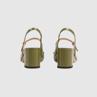 In the Spring Summer 2025 collection, the iconic Horsebit defines this pair of patent leather pumps. The rounded toe and the adjustable ankle closure complete the style, enhancing its preppy spirit. - Dark green patent leather - Women's - Light gold-toned hardware - Horsebit - Leather sole - Mid-heel - Height: 2.1" - Made in Italy