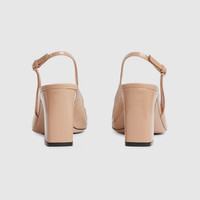 The iconic Horsebit defines this pair of patent leather pumps. The rounded toe and the adjustable ankle closure complete the style, enhancing its preppy spirit. - Rose beige patent leather - Women's - Light gold-toned hardware - Horsebit - Rounded toe - Leather sole - Adjustable ankle buckle closure - Mid-heel - Height: 2.9" - Made in Italy