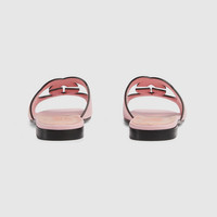Inspired by the summer spirit and beach clubs on the Italian coast, this item is part of Gucci Lido. Historic symbols continue to be reimagined and reinterpreted in new ways for the latest collections. Influenced by an archival design from the 1970s, the Interlocking G appears as a cut-out detail atop this sandal. - Pastel pink leather - Women's - Interlocking G cut-out - Leather sole - Flat - .4" heel height - Made in Italy