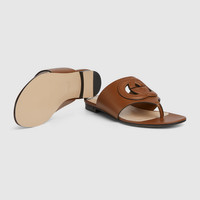 The Spring Summer 2024 collection explores archival symbols in new ways. These versatile sandals are presented in brown leather and feature a central Interlocking G cut-out across the centre front. - Brown leather - Women's - Interlocking G cut-out - Leather sole - Flat - 0.3" height, based on a size 37 (IT) - Made in Italy