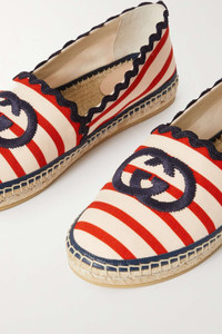 Logo-embroidered striped canvas espadrilles
