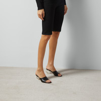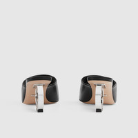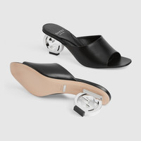 This slide sandal stands out for its contemporary shape and the statement Interlocking G heel. The silver-plated detail contrasts with the black leather for a sophisticated design. - Black leather - Women's - Interlocking G heel - Leather sole - Mid-heel - 2.5" heel height, based on a size 37 (IT) - Made in Italy