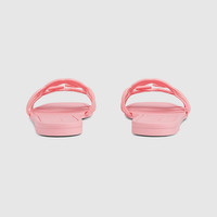 Emblematic codes of the House and refined patterns are reinterpreted in contemporary ways for the Pre-Fall collection. This slide sandal appears in pink rubber with an Interlocking G cut-out enriching the style with a distinct logo feel. - Pink rubber - Women's - Interlocking G cut-out - Rubber sole - Flat - 0.4" heel height - Made in Italy