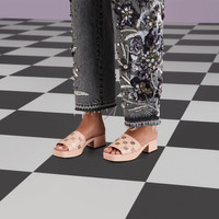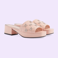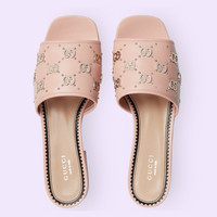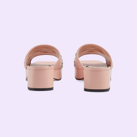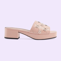 With a '90s-inspired silhouette, this pair of sandals are presented in pink leather. The Interlocking G studs add a contemporary and emblematic feel to the style. - Light pink leather - Women's - Interlocking G studs - Flat - 1.6" heel height with 0.9" platform - Made in Italy