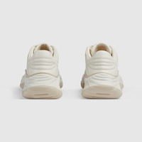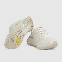 This new addition to the sneaker line has a high-tech look thanks to its chunky sole and stitched leather upper combined with breathable mesh. Two logo details complete the off white leather design, including an Interlocking G leather patch with a 3D effect and a Gucci lettering metal hardware. - Off white leather - Women's - Off white mesh details - Gucci lettering metal hardware - Interlocking G patch - Lightweight rubber sole - Top stitching - Additional pair of laces included - Lace up - Low heel - Made in Italy