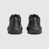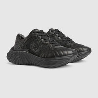 This new addition to the sneaker line has a high-tech look thanks to its chunky sole and stitched leather upper combined with breathable mesh. Two logo details complete the black leather design, including an Interlocking G leather patch with a 3D effect and a Gucci lettering metal hardware. - Black leather - Women's - Black mesh details - Gucci lettering metal hardware - Interlocking G patch - Lightweight rubber sole - Top stitching - Additional pair of laces included - Lace up - Low heel - Made in Italy