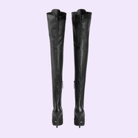 Gucci's designs continue to distinguish themselves through a hybrid narrative that takes inspiration from diverse eras, decades and influences. Leather is reworked into unexpected silhouettes, combined with contrasting fabrics, and presented in vintage-inspired color palettes. - Black leather - Women's - Black python print leather trim - Lace-up and zip closure - High heel - 4.3" heel height; 25.9" shaft; 19.6" circumference-all measurements based on a size 37(IT) - Made in Italy