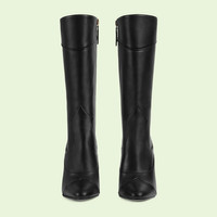 Classic designs are reimagined through the Gucci lens season after season; this pair of black leather boots feature subtle top-stitching details. The mid-calf length makes this style versatile to wear and easily combined with a variety of ready-to-wear pieces. - Black leather - Women's - Pointed toe - Leather sole - High-heel