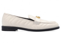 Textures and colors combine to present a contemporary approach to the classic loafer. Crafted from white chevron matelassé leather, the shoe is completed by the House's gold-toned monogram hardware. - White chevron matelassé leather - Women's - Double G - Leather sole - Flat - .6" heel height - Made in Italy