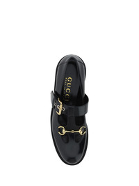 Calfskin Horsebit Loafers by Gucci, almond toe on front, non-slip rubber block heel, platform sole, front tray embellished with iconic gold-plated brand Horsebit, adjustable leather buckle on back of foot, patent leather design. DETAILS sku 758285DS800_1000 composition : CALF LEATHER BOS TAURUS 100% RUBBER 100% color group : BLACK gender : WOMAN season : SS24 size chart : SHOES WOMAN IT category name : LOAFERS icon : icon