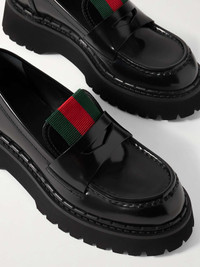 EDITORS'NOTES Gucci's 'Thea' loafers offer a contemporary take on classic styles. Made from glossy patent-leather, they're set on lug soles and feature traditional penny slots and the label's signature red and green stripe webbing trim on the tongues. SIZE & FIT - Fits true to size, take your normal size - Italian sizing DETAILS & CARE - Heel measures approximately 40mm/ 1.5 inches with a 20mm/ 1 inch platform - Black patent-leather (Calf), green and red webbing - Slip on