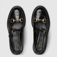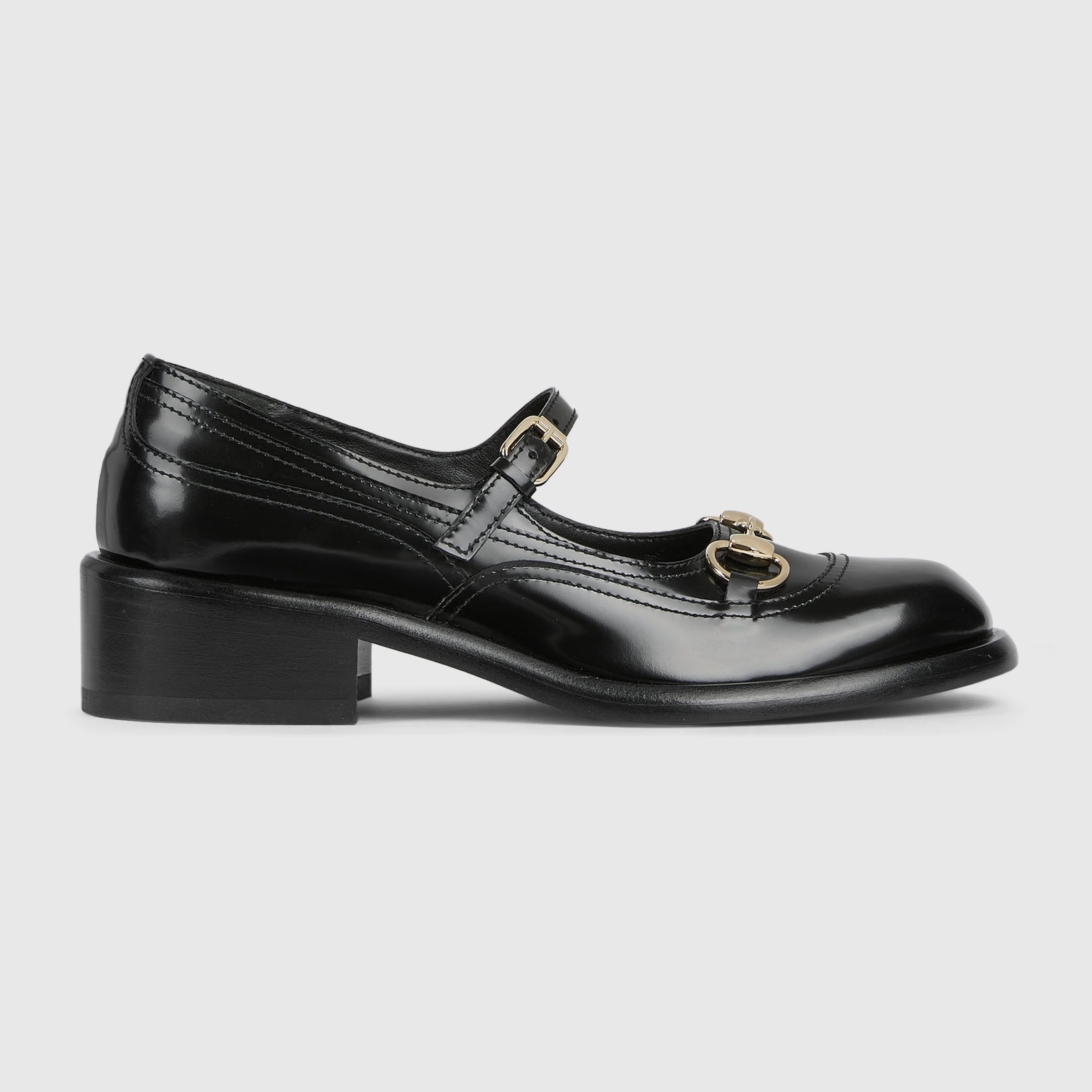 In the Fall Winter 2025 collection, Gucci continues to feature archival symbols. For the latest collection, the Horsebit hardware recalls the House's equestrian heritage. This pair of women's Mary Jane is crafted in patent leather and defined by a light gold-toned hardware. - Black patent leather - Light gold-toned hardware - Horsebit - Leather sole - Brogue details - Height: 1.3" - Made in Italy