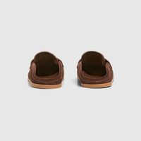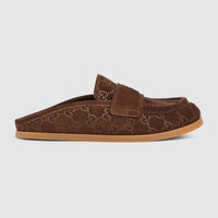 This versatile design combines the brand's heritage with modern sensibility, showcasing an embossed Double G emblem that adds a touch of logo. Crafted in GG suede, the mule offers a sleek silhouette and a durable rubber sole, ensuring both style and practicality. - Brown GG suede - Women's - Embossed Double G detail - Rubber sole - Flat - Made in Italy