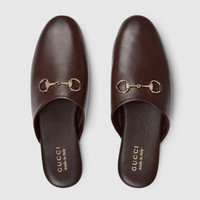In the Fall Winter 2025 collection, Gucci continues to feature archival symbols. For the latest collection, the Horsebit hardware recalls the House's equestrian heritage. This pair of women's mule is crafted in supple leather and defined by a light gold-toned hardware. - Dark brown leather - Light gold-toned hardware - Horsebit - Leather sole - Flat - Made in Italy