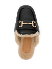 Ariel slippers Highlights - Black - Calf leather - Grained texture - Square toe - Signature horsebit detail - Branded footbed - Open back - Flat rubber sole - Gold-tone hardware - Slip-on style - We've partnered with good on you — an independent agency that rates how brands perform in relation to their impact on the planet, people and animals, with a multi-criteria rating simplified to a five points scale. in order to be awarded our conscious label, larger brands need to score a minimum of four out of five ('good'), while smaller brands must score at least three out of five ('it's a start'). - This item comes from a brand rated three out of five ('it's a start') by good on you at the time it was added on farfetch. please note, this is a brand-level rating and does not guarantee that this product is made with conscious materials. - Learn more about what makes a product conscious on our conscious criteria page Made in Italy Composition Outer: Calf Leather 100% Lining: Goat Fur 100%, Calf Leather 100% Sole: Rubber 100% SIZE & FIT Measurement HEEL 1.18 in(3 cm) Sole height 0.39 in(1 cm)