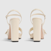 This women's platform sandal is crafted from smooth leather, with padded insole for comfort. The Double G hardware in light gold-toned hardware adds a touch of contemporary elegance. - Ivory leather - Light gold-toned hardware - Leather lining - Double G - Soft padded insole - Leather sole - Adjustable ankle closure with buckle - High heel - Height: 0.6" on the front, 4.5" at the back