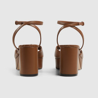 Elevating a signature silhouette, this women's platform sandal is crafted in smooth leather and accented with the archival Double G. The light gold-toned hardware adds a luminous finish, blending vintage charm with contemporary elegance. - Brown leather - Light gold-toned hardware - Double G - Leather sole - Adjustable ankle closure with buckle - Mid-heel - Height: 2.9" - Made in Italy