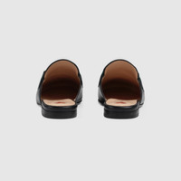 The Princetown brings together different chapters from the House's history for Pre-Fall 2020. Since its introduction, the slipper has become a mainstay in the House's collection. Here, crafted from black leather, the shoe combines two emblematic symbols from the archives that speak to Gucci's equestrian heritage: the Web and the Horsebit. - Black leather with tonal piping - Women's - Green and red Web - Horsebit detail - Leather sole - Flat - .4" height - These shoes run small, we recommend sizing up half a size - Made in Italy